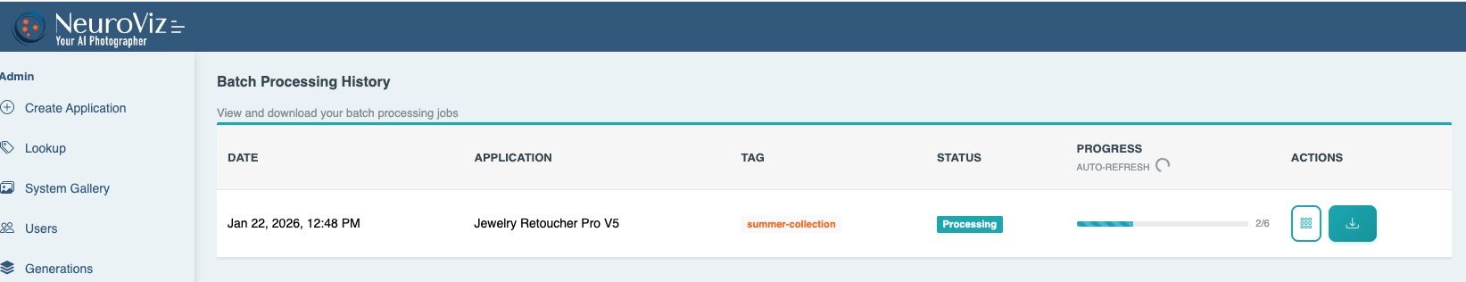 - Go to “Batches” section. See all your batches. Check processing status. View completion progress. Each batch shows: